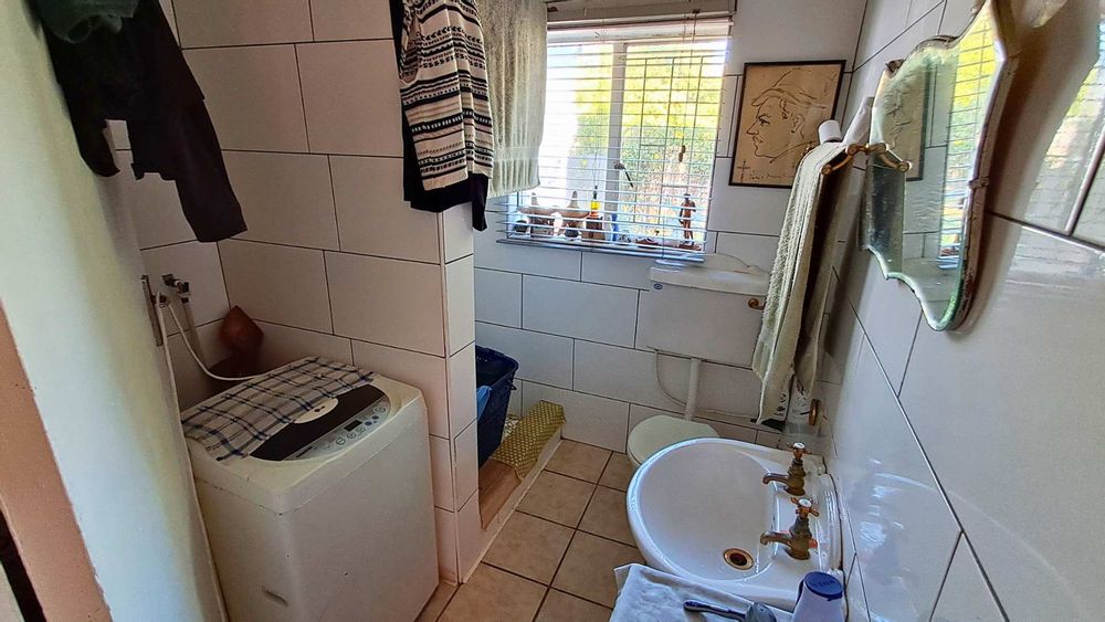 Main house: 3 bedrooms, 2.5 bathrooms, entertainment room/study, kitchen, dining and lounge, covered laundry, and private yard (currently rented for R12 500).